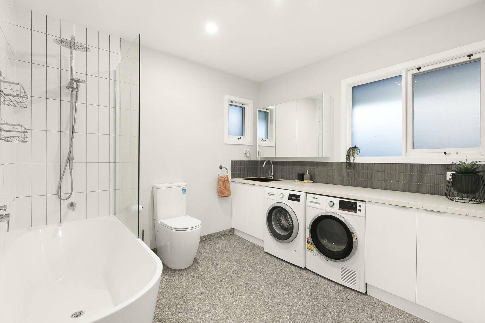 The back half of this home offers a open plan dining room big enough to accommodate an 8 seater dining table, to the right is a separate fully enclosed study ideal for working from home/office or kids play room, next to this is the 2nd fully equipped bathroom with shower over bath, laundry and great storage cupboard.