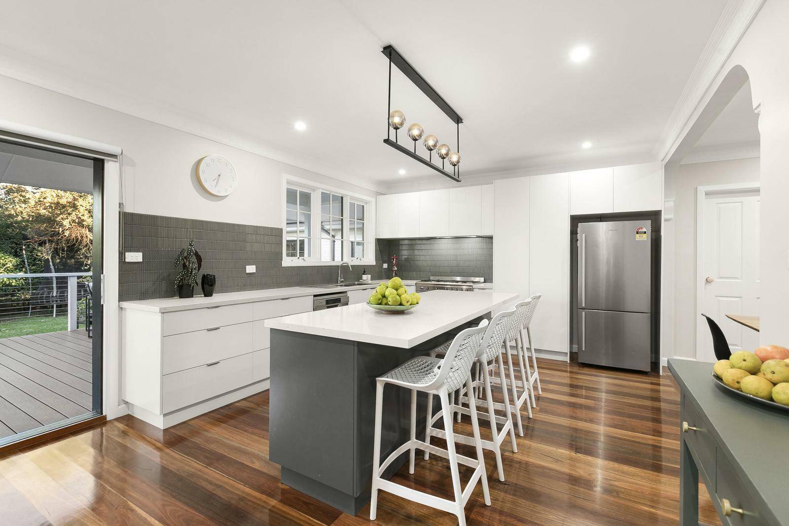Generous open plan kitchen with island bench, stone benchtops, fantastic storage including pantry, dishwasher and a stunning Smeg chef oven. The kitchen overlooks the living room which also opens out to a rear alfresco entertaining deck that overlooks a stunning back garden. Boasting healthy lemon, fig, mandarin, olive and grapefruit trees, which whilst are a lovely aspect that are also very fruitful