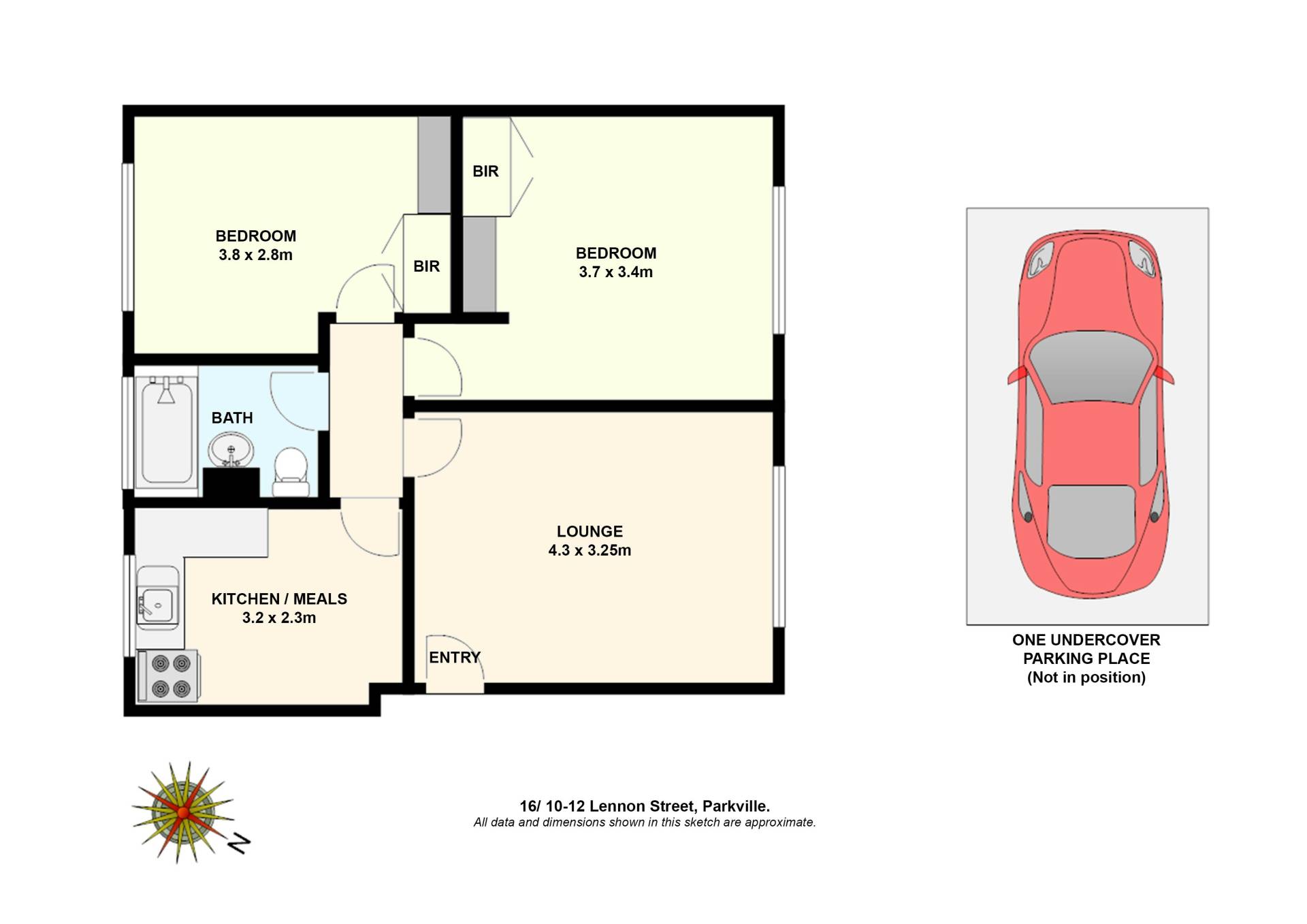 Step into a spacious lounge with lovely north facing windows, A generous kitchen with great storage and ample space for a small dining table. 2 well proportioned bedrooms both with built-in robes as well as additional nooks ideal for a desk/draws or extra storage options. The central well presented bathroom offers shower over bath.