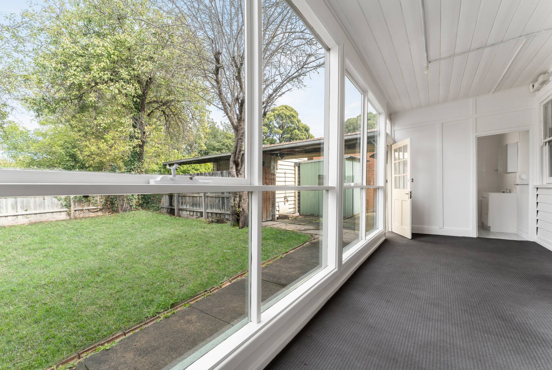 A front and rear garden is neat and tidy and just willing a green thumb to make it their own. A storage shed tucked in the corner offers great storage for those bits and pieces you want to hide.